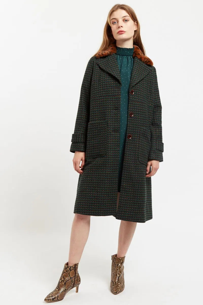 Louche Roksana Cottage Check Faux Fur Collared Coat
