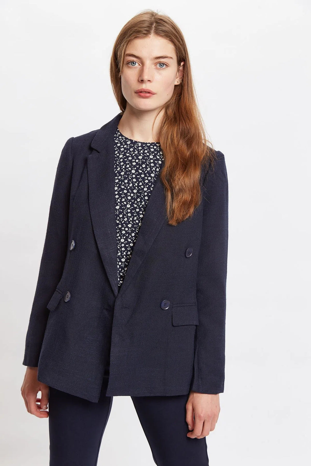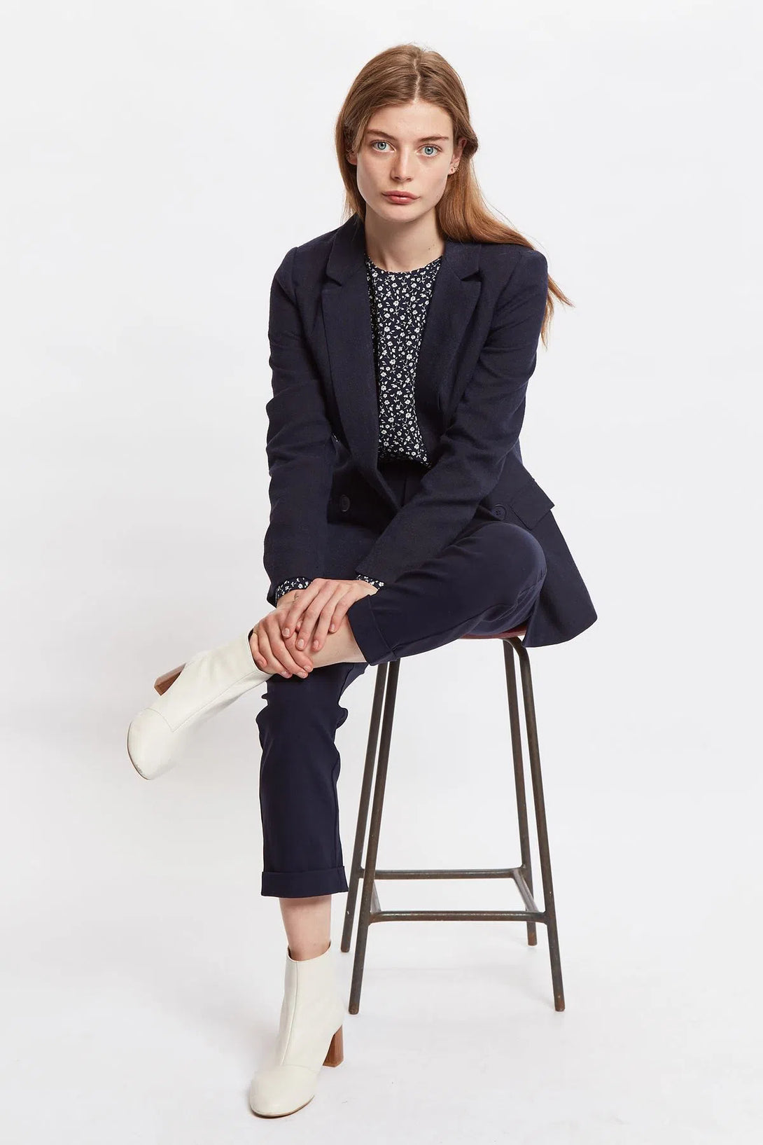 The office awaits! If theres anything you need to pull off a chic return is a well cut blazer. Riley ticks all the boxes and is just so versatile. Pair with the Joele Navy trousers for that sharp city trader look, soften the look by teaming with the Cathleen country rose and for the weekend add your favourite denims and a white tee.