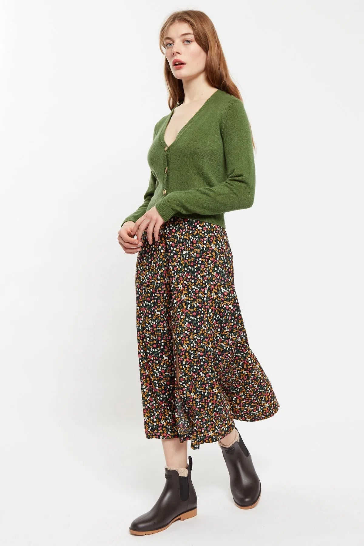 We particularly love this easy to team with midi skirt. Featuring a flattering, hip skimming silhouette with off centre front slit and crafted in simple black base ditsy print. This is the perfect skirt to bring a simple white tee or black top to life. It's perfect for making a new season statement.
