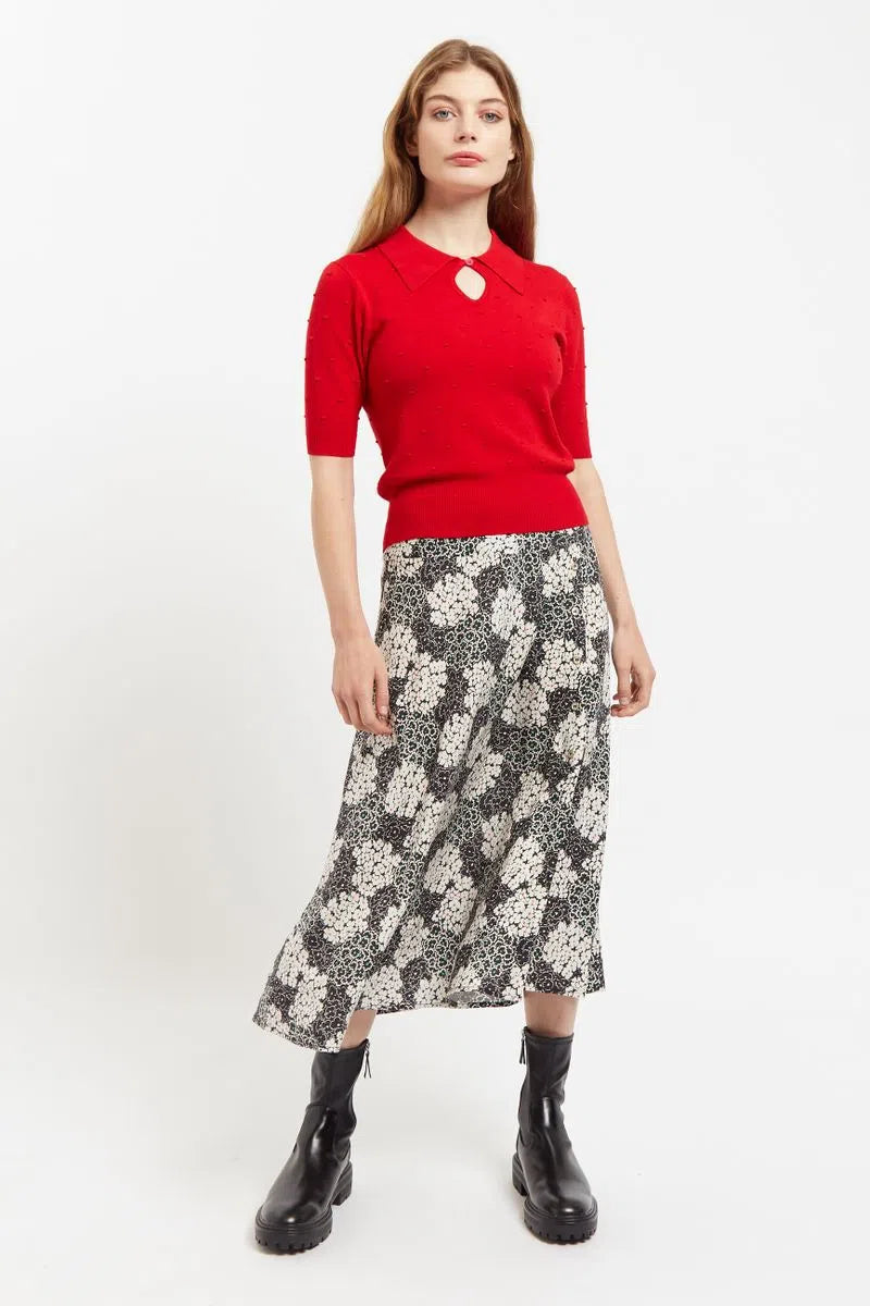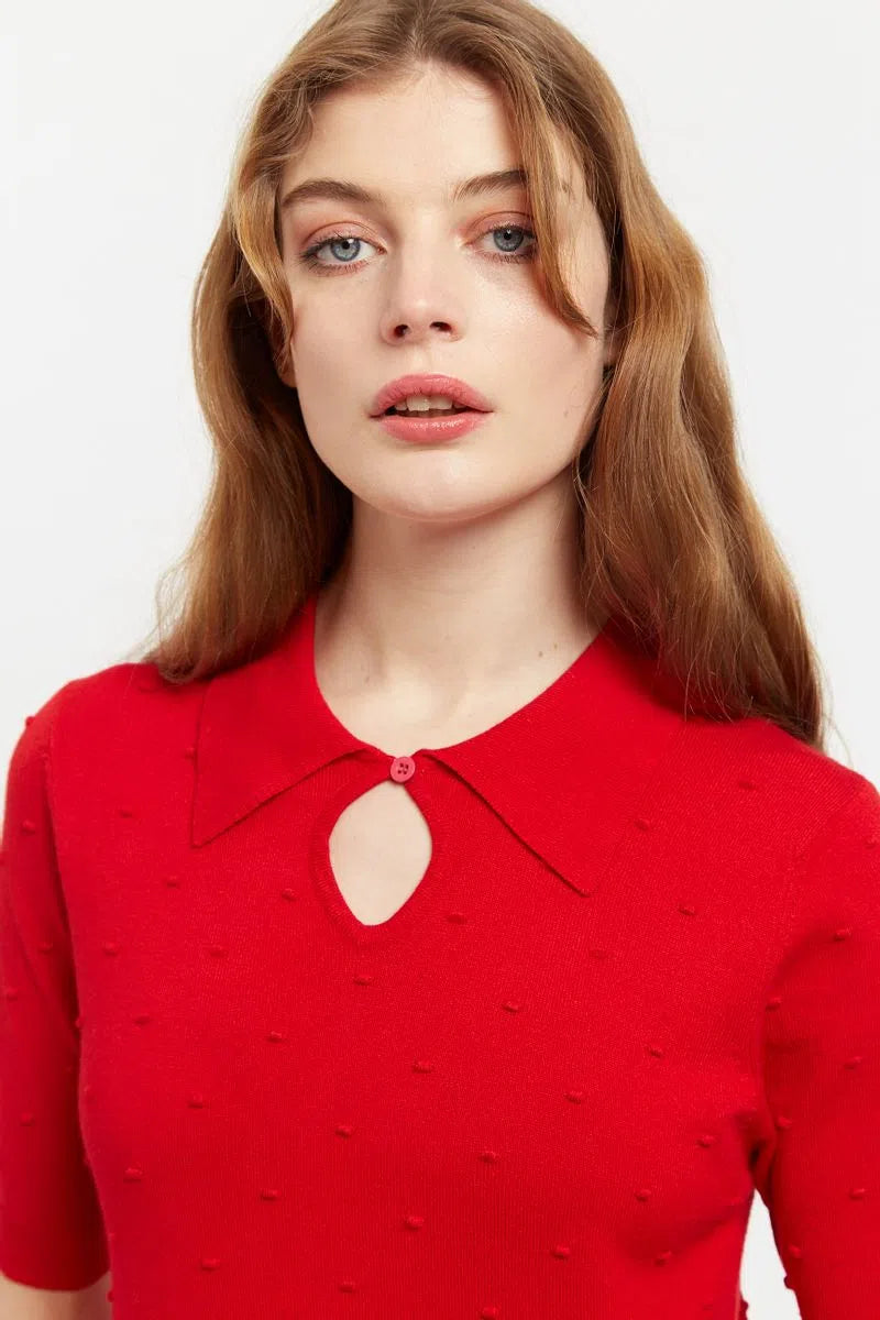 Louche Josephina Raindrops Textured Short Sleeve Collared Sweater Red