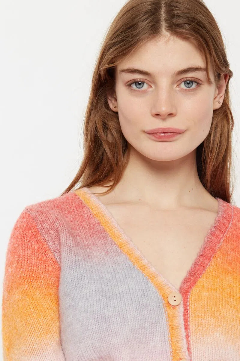 Louche Thao V Neck Space Dyed Cardigan in Orange