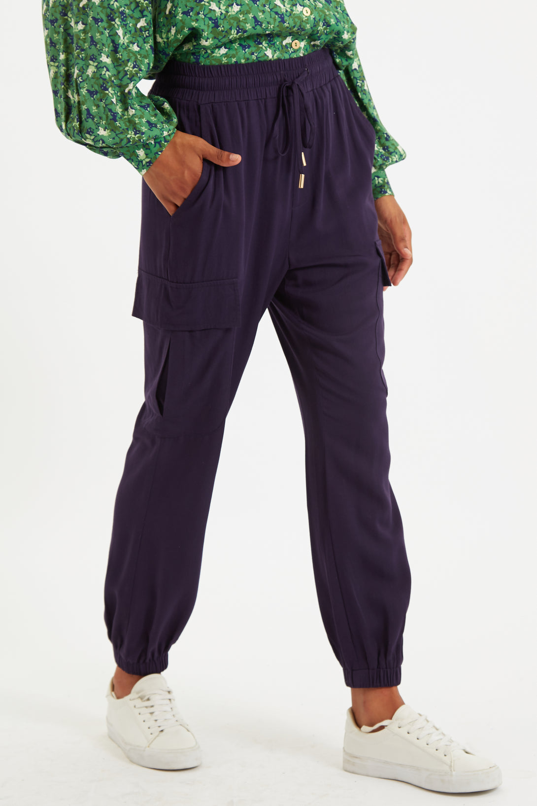 Hang loose in these relaxed fit cargo trousers in Navy featuring an elasticated waist and hem with a total of 4 pockets. Weekend ready!