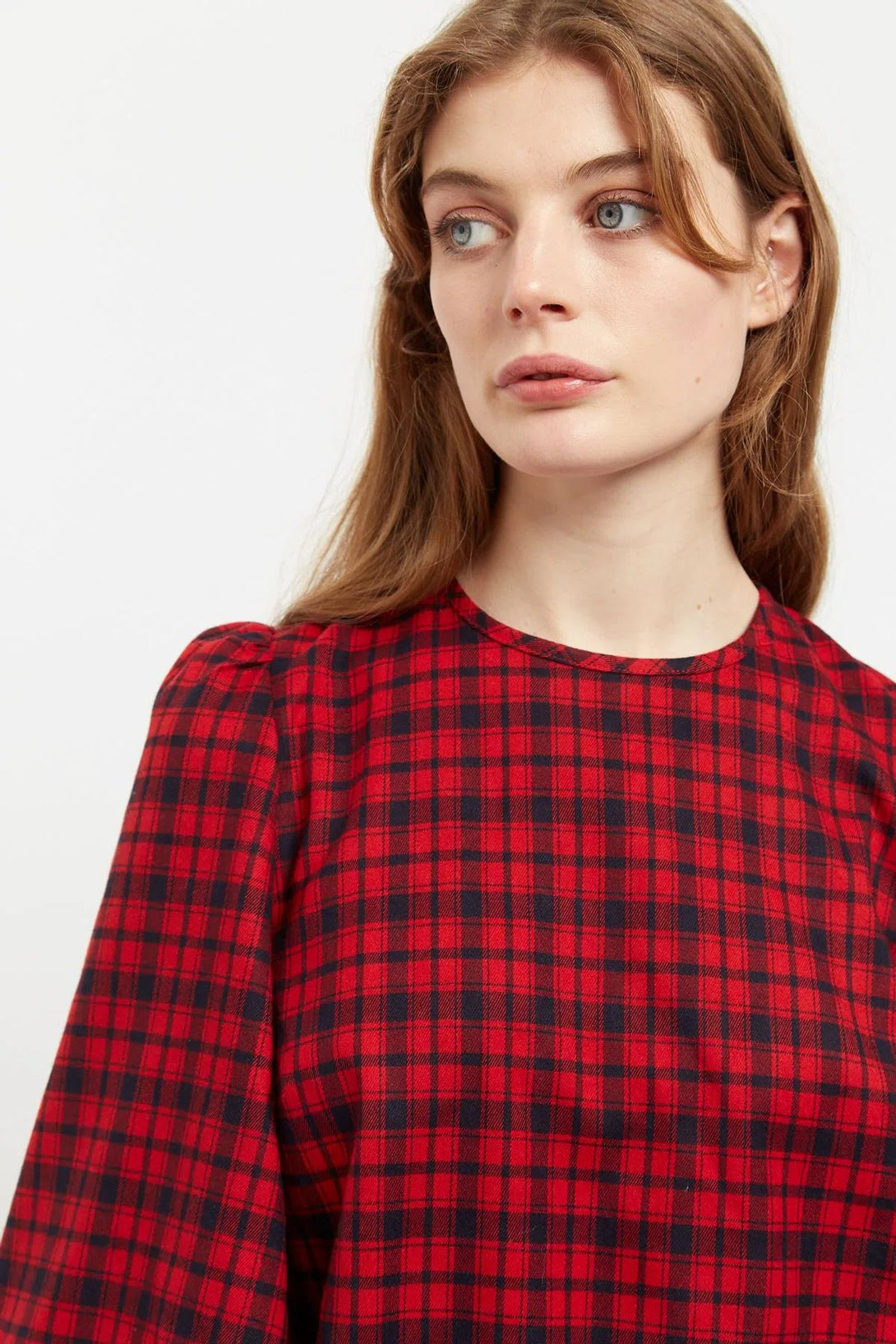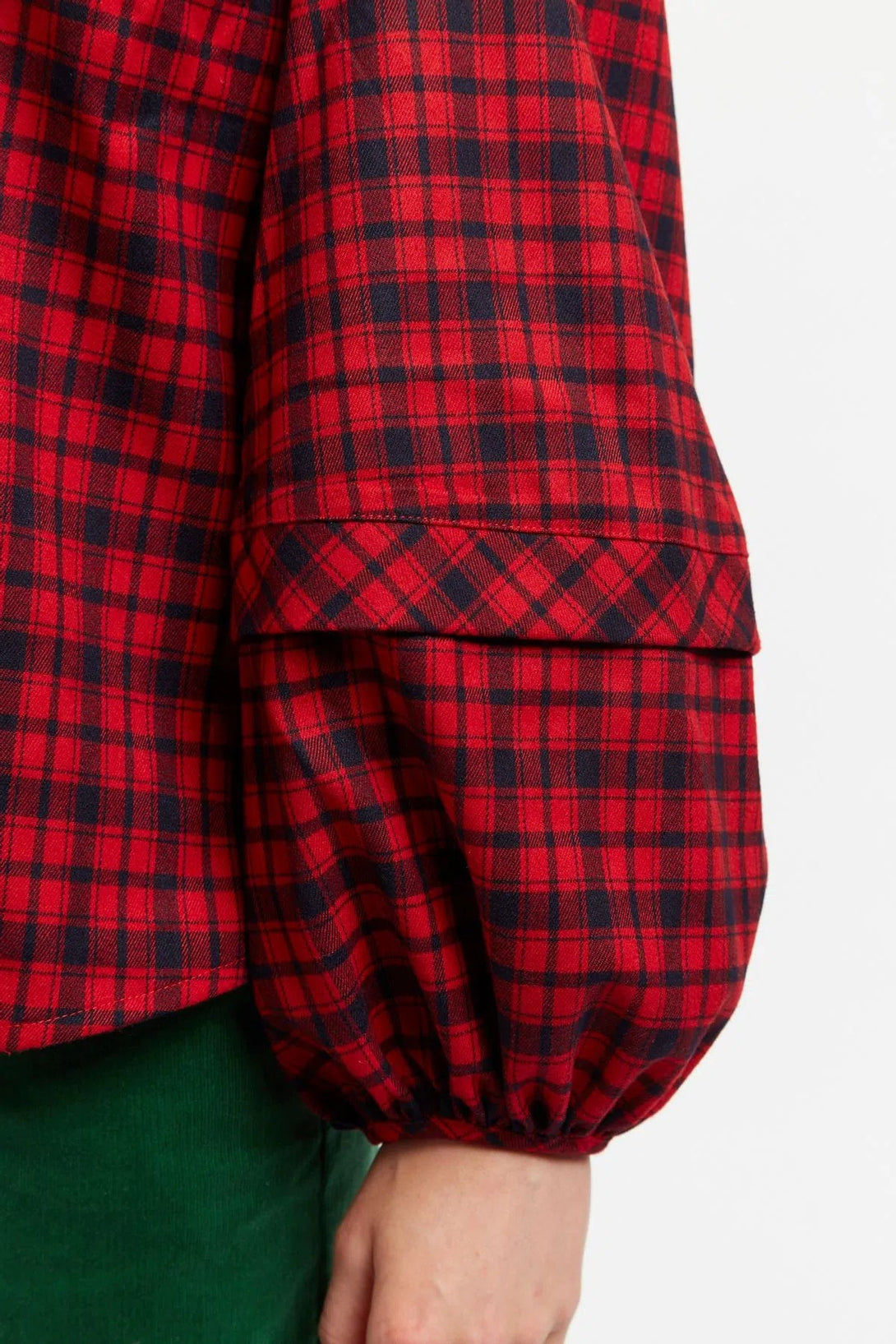 Rivka Winter Gingham Long Sleeve Blouse in Red and Black