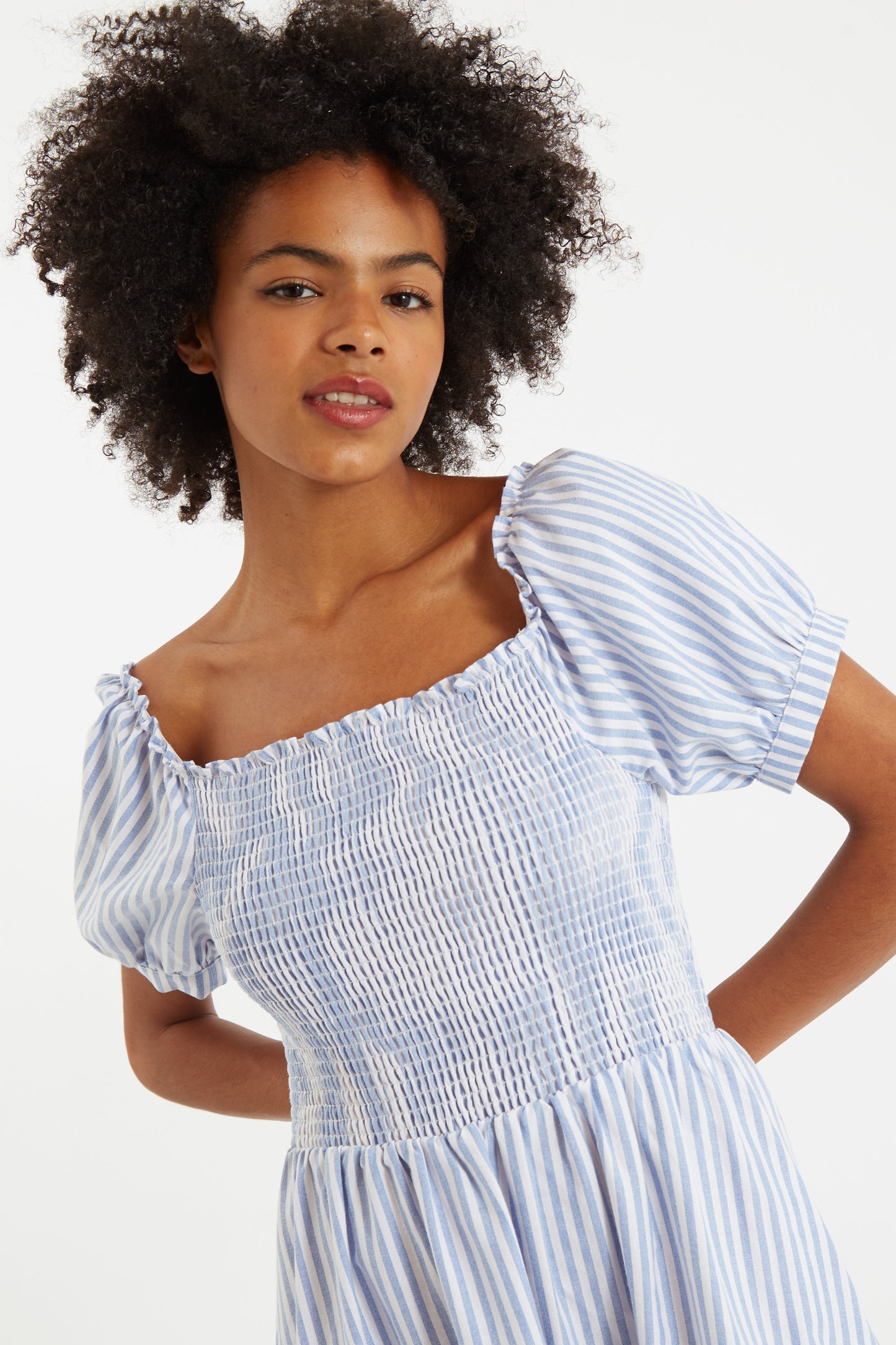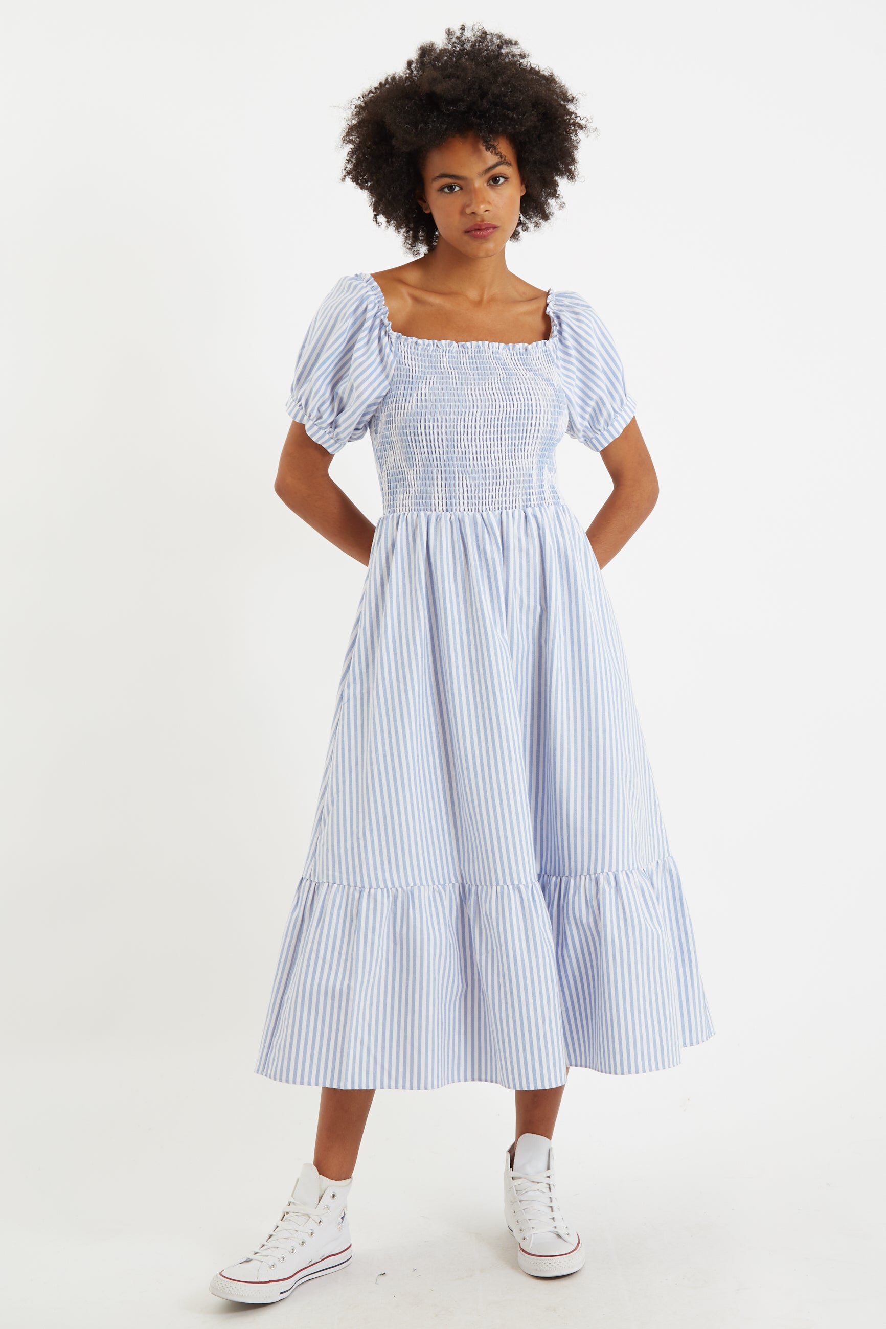 Babette Sail Stripe Shirred Bodice Midi Dress Blue