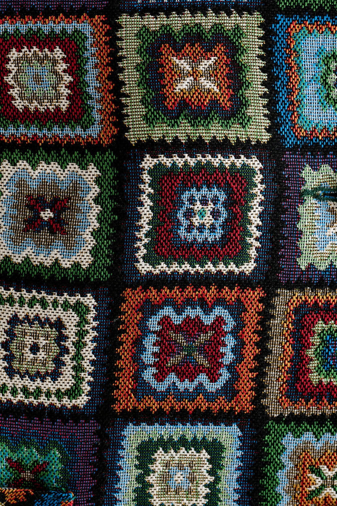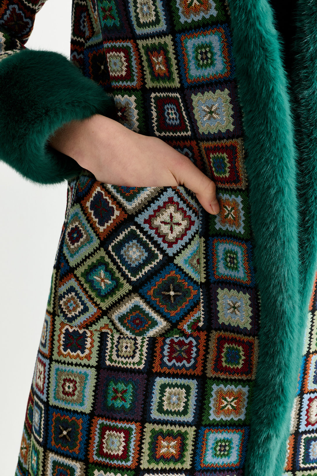 Delphia 70'S Patch Jacquard Fur Trim Coat – Multicoloured