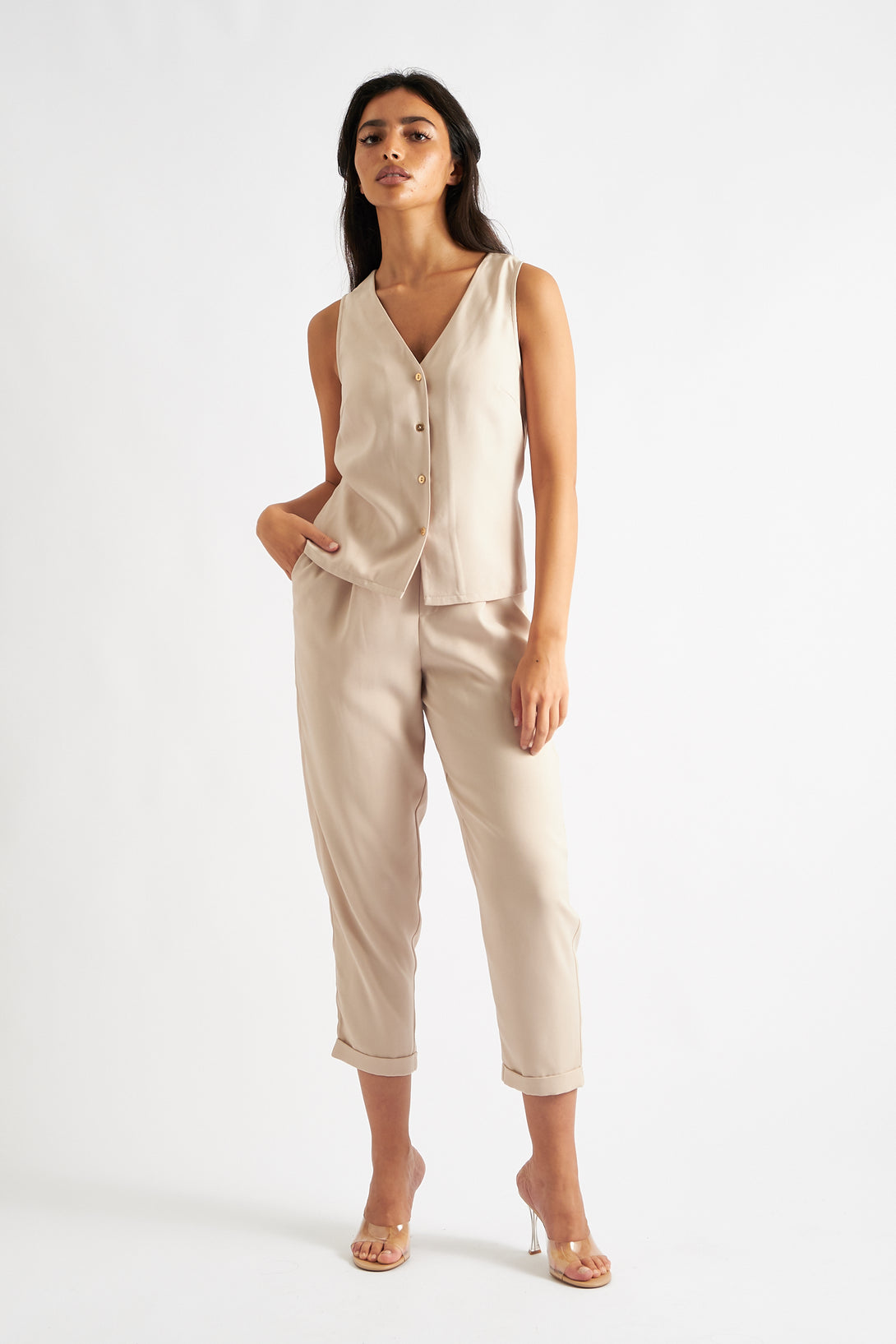 Jakson Sustainable Satin Back Crepe Waistcoat - Camel