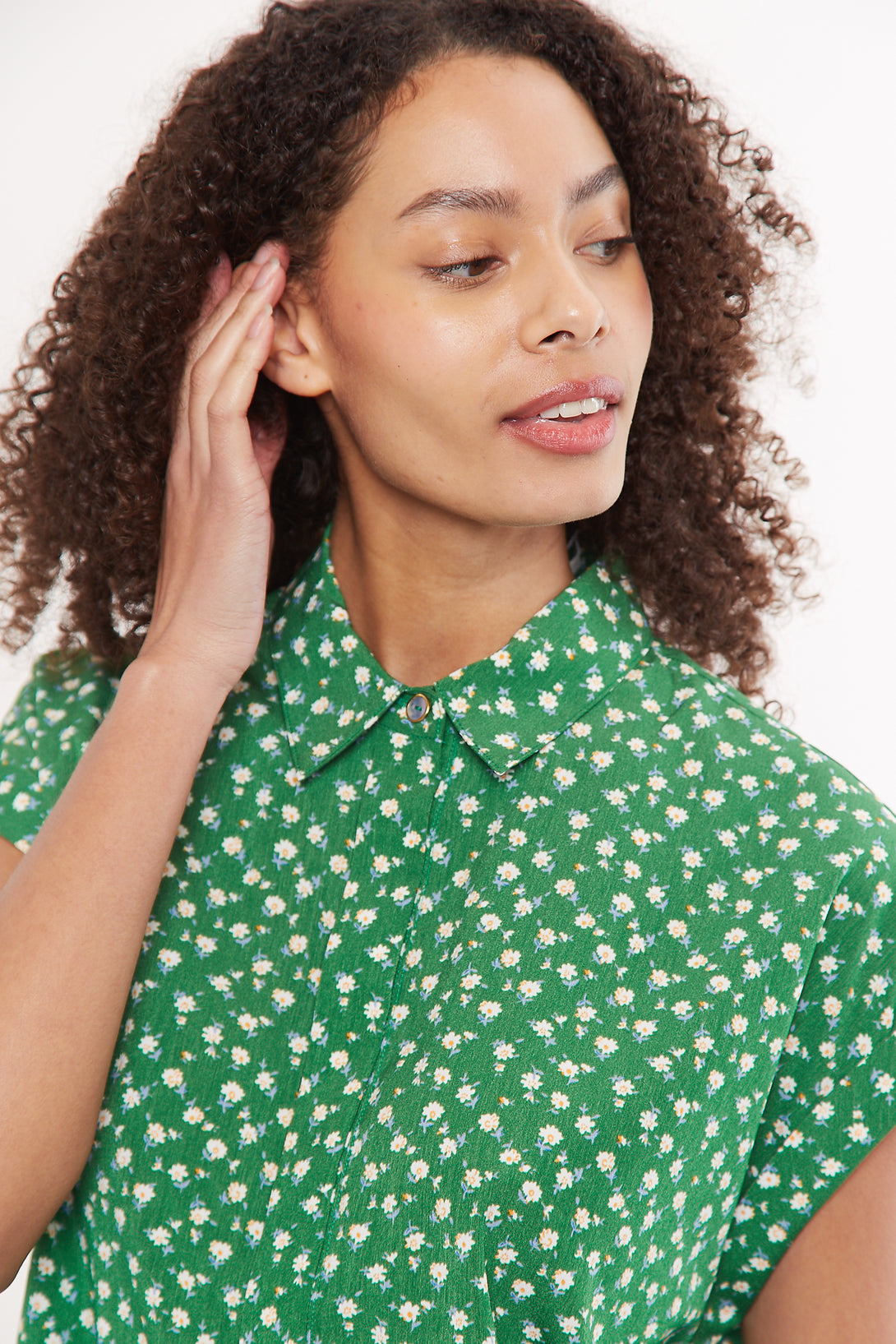 There’s a reason that we all love this shirt. Perfectly relaxed and uber flattering. Featuring an extended cuffed shoulder and neat collar. Now crafted in a ditsy white daisy printon a green ground, perfect for summer.