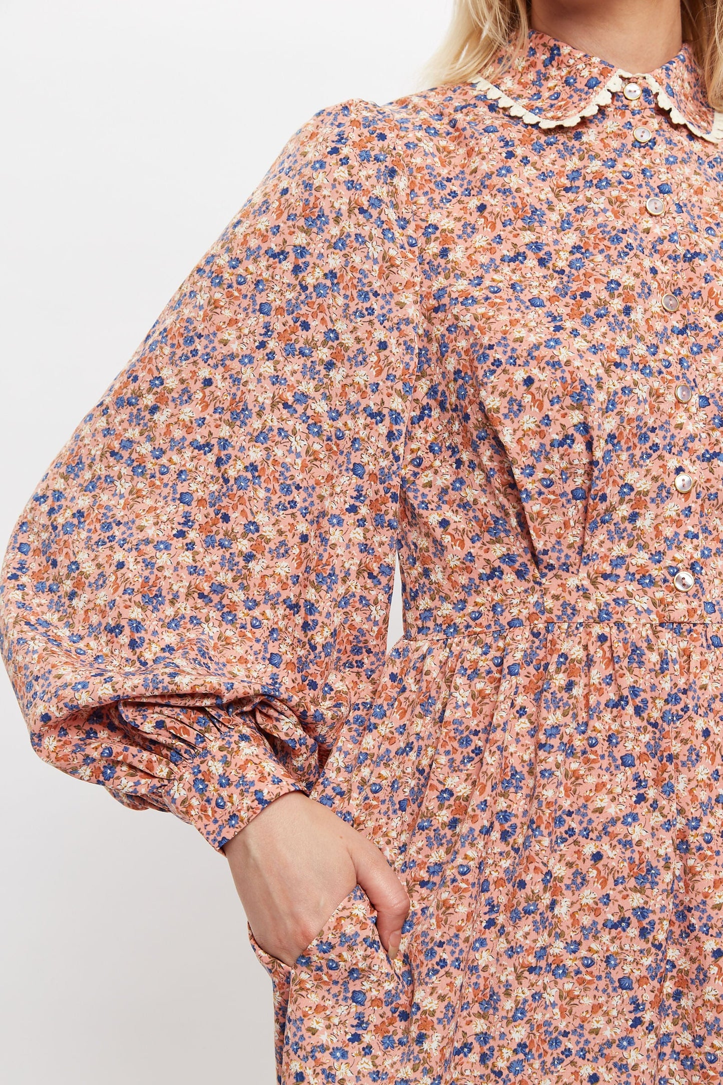 Anda ticks all the boxes for that summer wedding or special occasion that you've been searching for. This midi dress, crafted in our charming dainty ditsy, features billowing sleeves, a tiered skirt, elegant lace trim collar, elasticated waist for definition and comfort, button fastening and our all important side seam pockets.