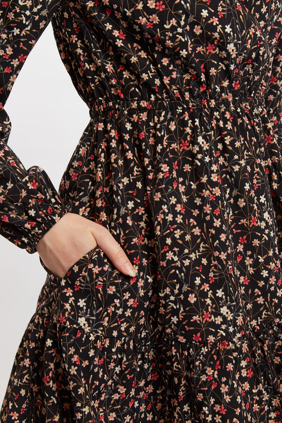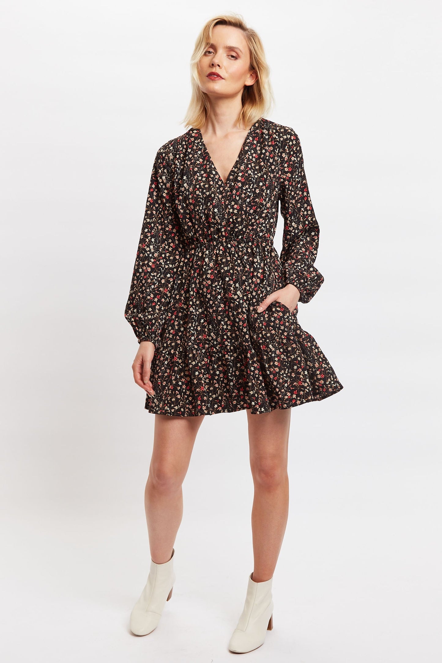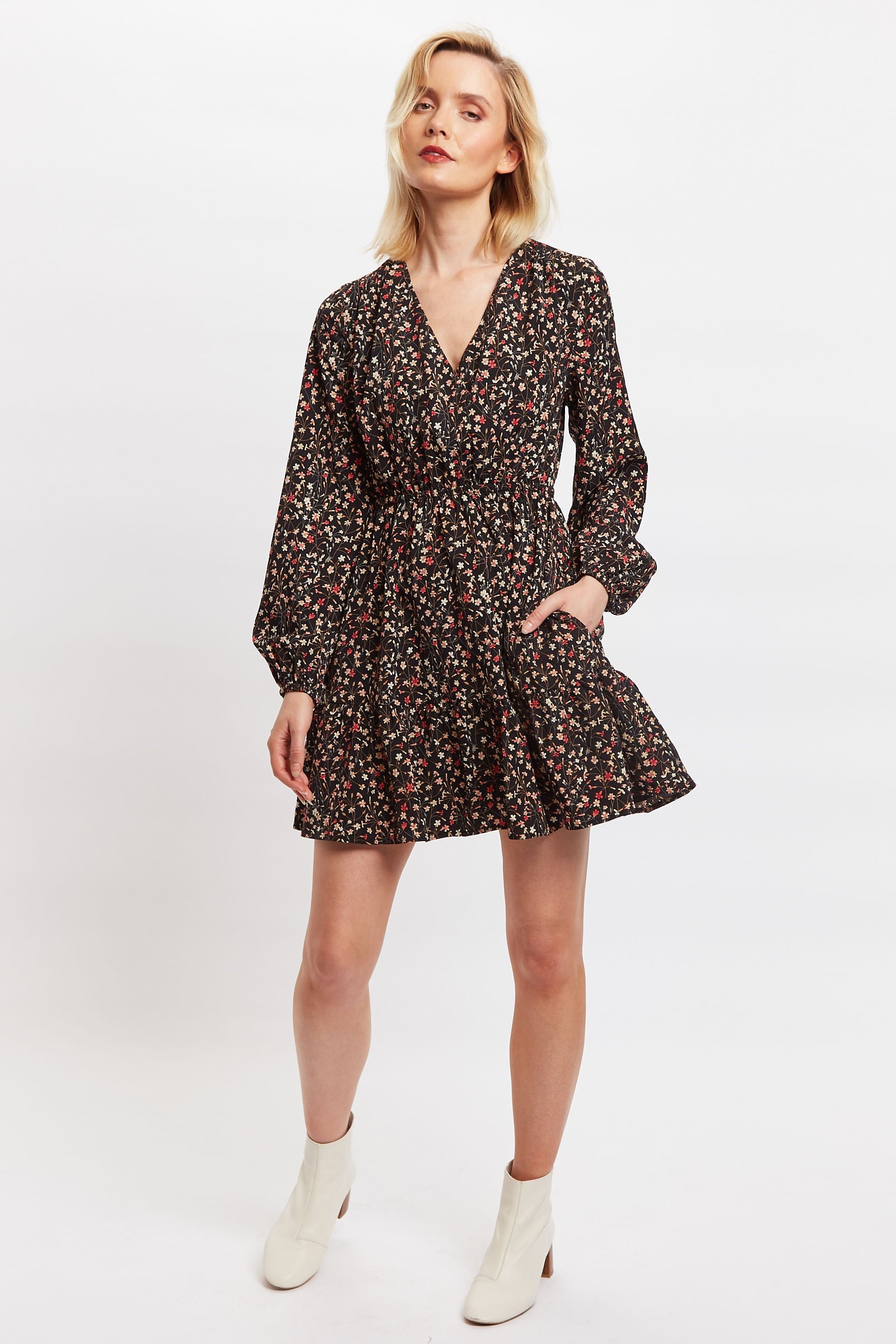 Louche Giovanna Wax Flower Print Long Sleeved Tie Mini Dress