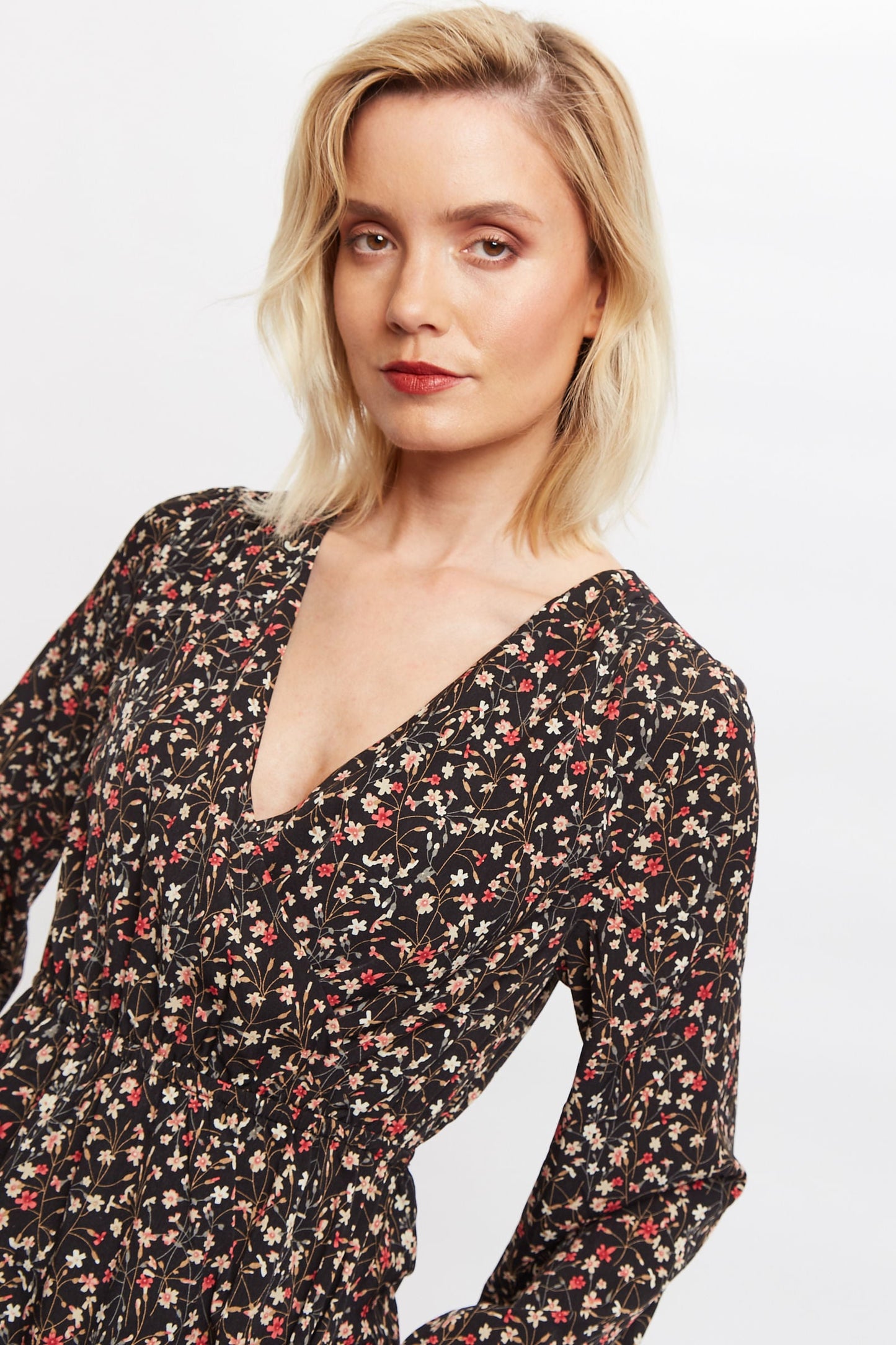 Welcome Giovanna, our new style that combines the feminine flair of a tiered mini dress with the intricacy of our wax flower print and generously loose fitting sleeves for an effortlessly cool and put together outfit. Featuring an elasticated back waist to give definition but maintain comfort, faux wrap bodice detail and of course, side seam pocket