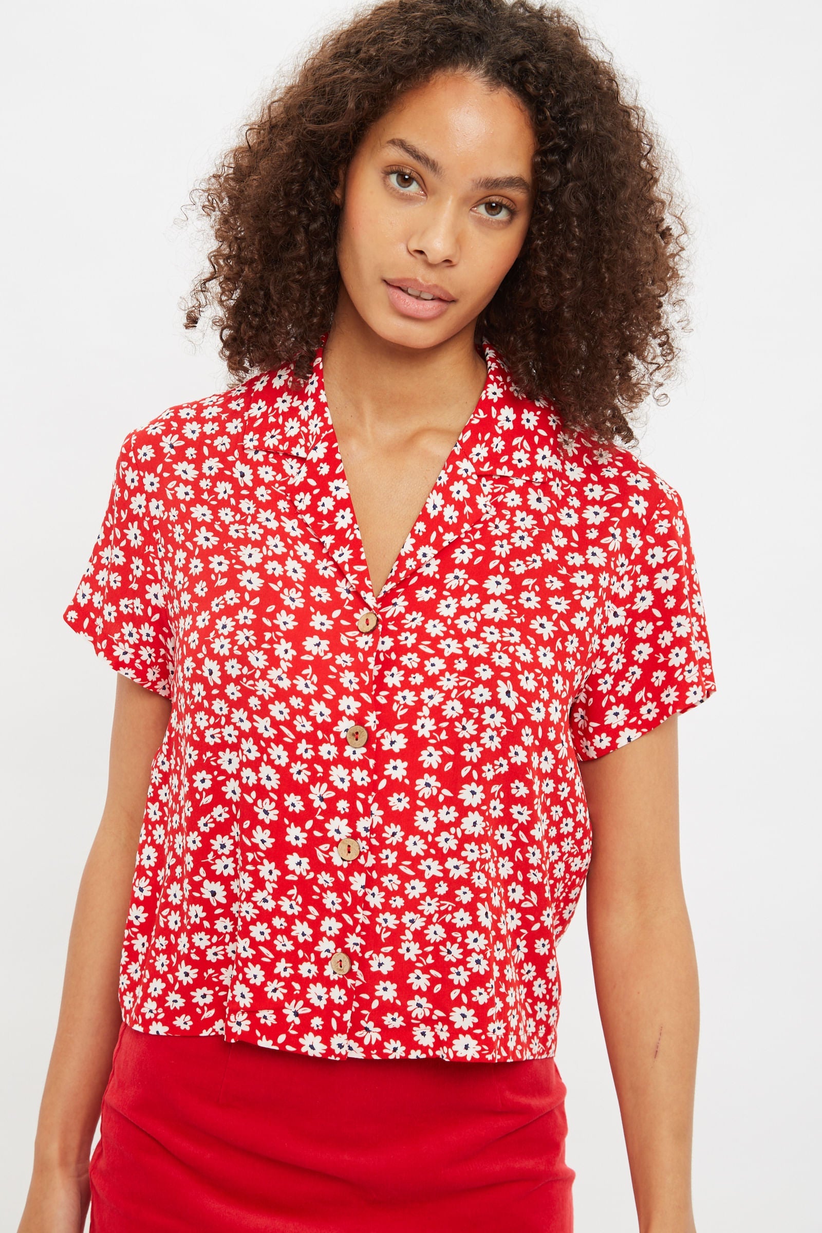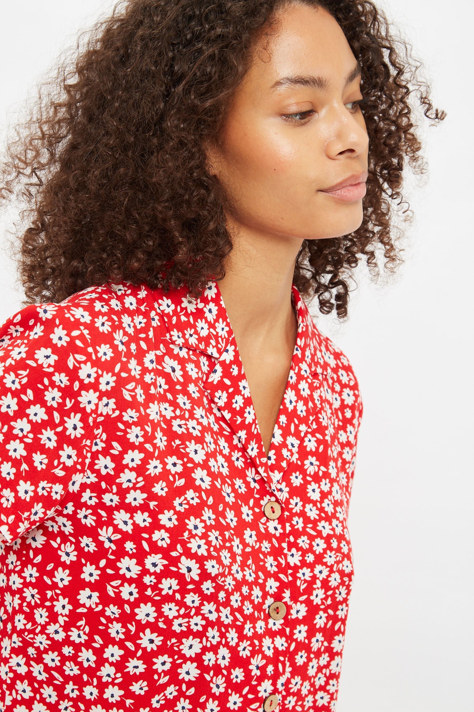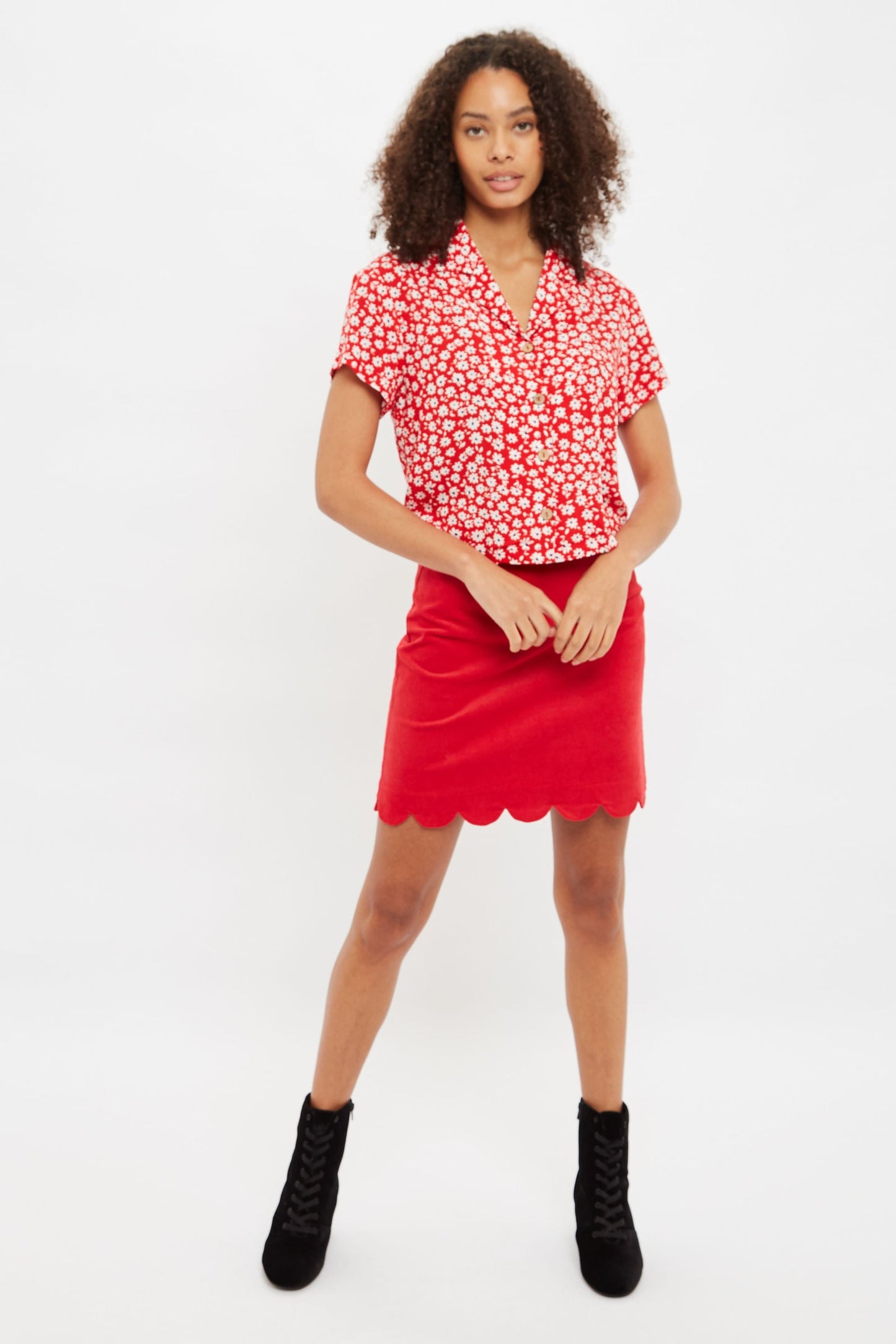 Easy, airy and just a touch cropped. This relaxed fit bowling shirt, crafted in our ditsy flower sketch print in red is just perfect for summer day dressing or alternatively layer over a long sleeve turtle neck on those more chilly days for a practical but quirkier look.
