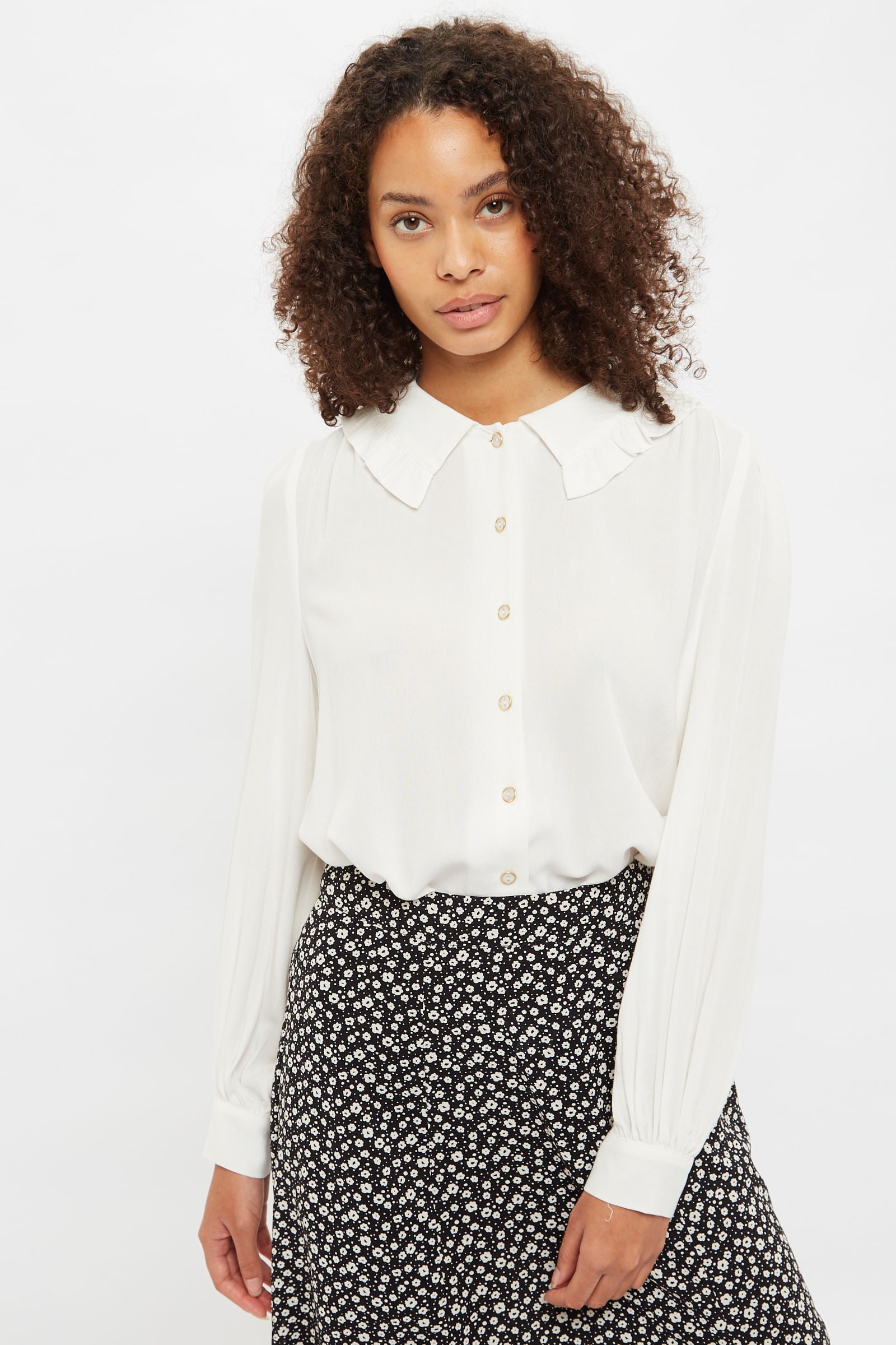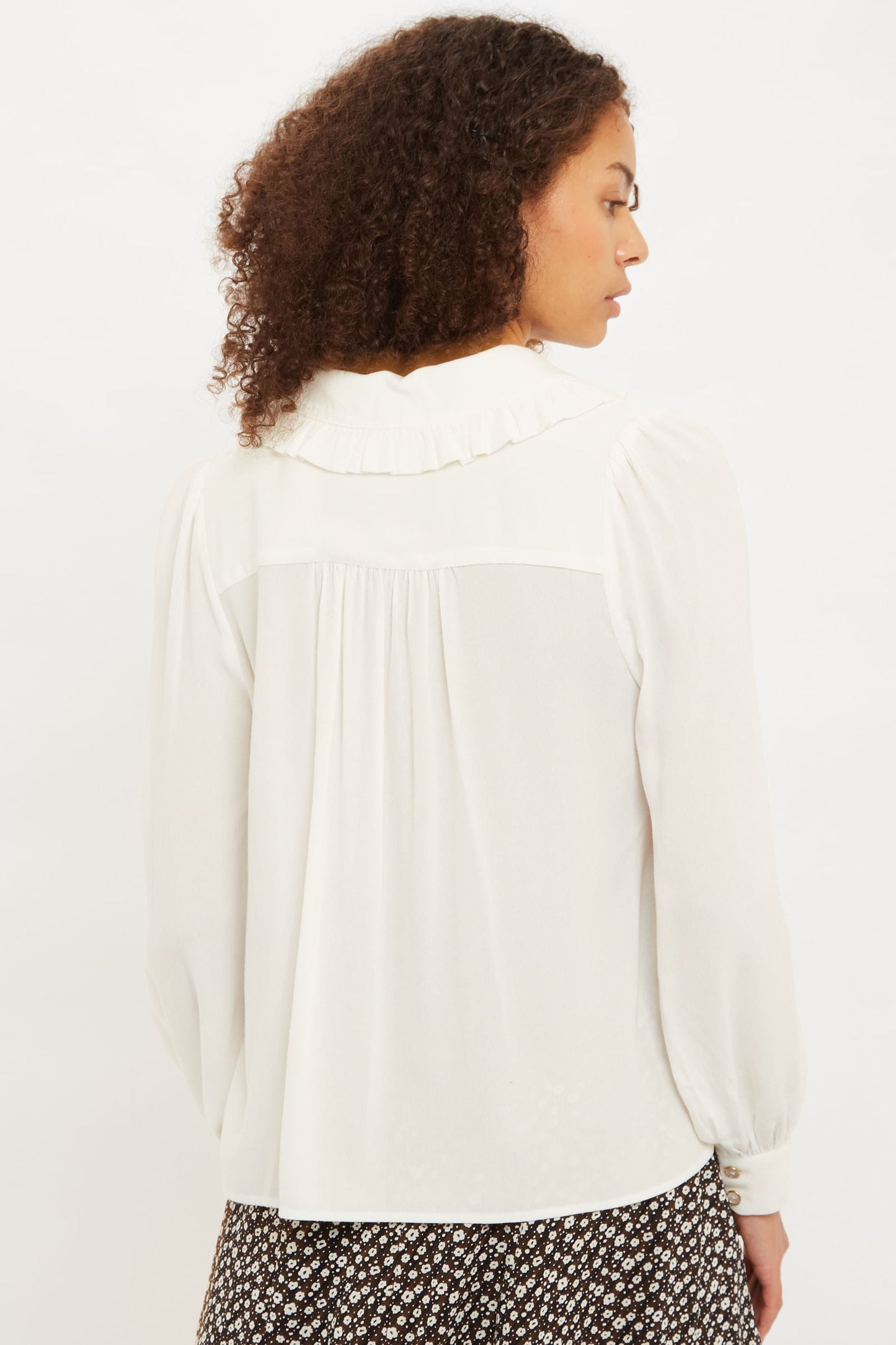 The Mercer blouse is perfect if you're looking to add a little extra flair to your everyday. This long sleeve blouse in a viscose moss crepe features a button through fastening, gathered front and back yoke and a delicate frill collar detail. Pair with a simple black boot and our Kiyo flower spot skirt in black for an effortless, sophisticated look.
