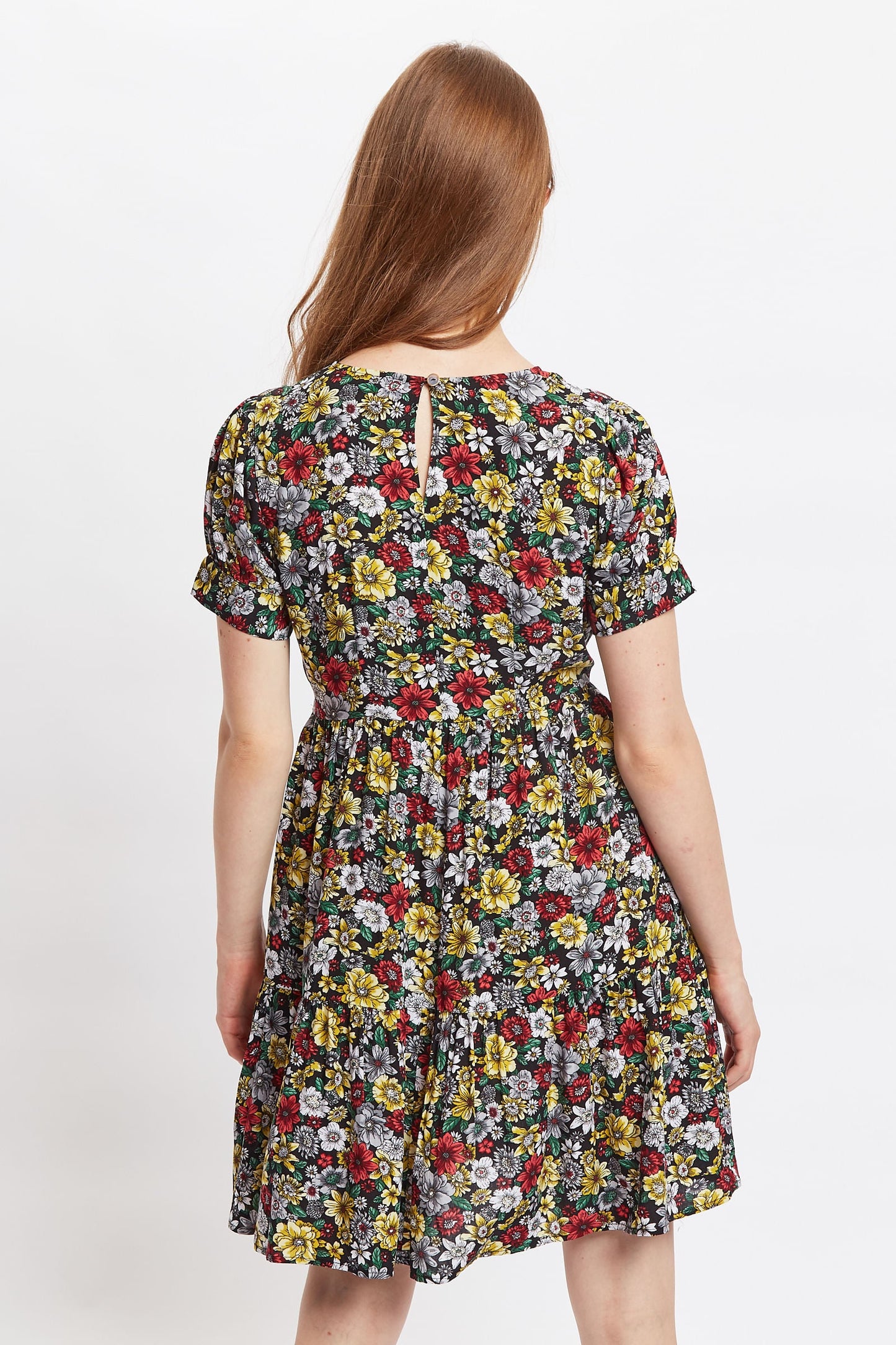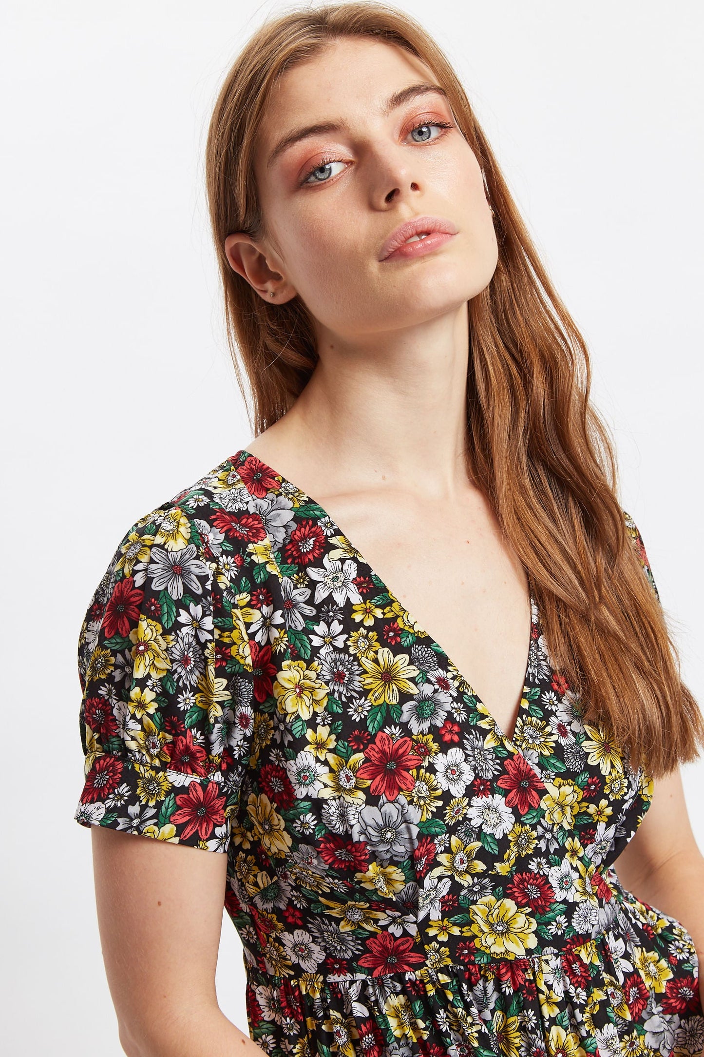 Meet Saara, a cute tiered mini dress. Featuring a V neck, wrap bodice, side zip fastening for ease when wearing and of course side seam pockets. Crafted in a new favourite floral print with an illustrative style, woodland walk. This is a dress that you can throw on an feel effortlessly pretty, perfect for daytime outings.