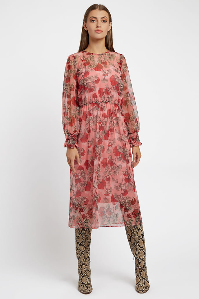 We are all a little in love with this dreamy floral long sleeve midi dress with flattering elasticated waist.