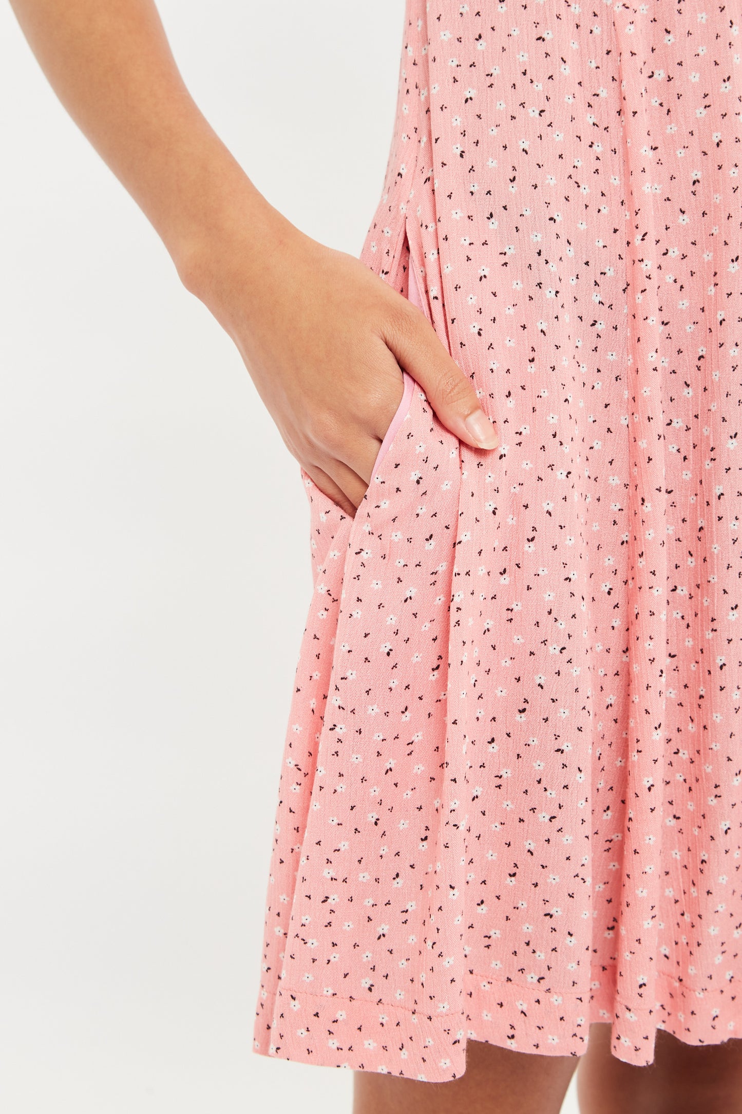 Luiza Teeny Flower Bud Tie Front Short Sleeve Tea Dress