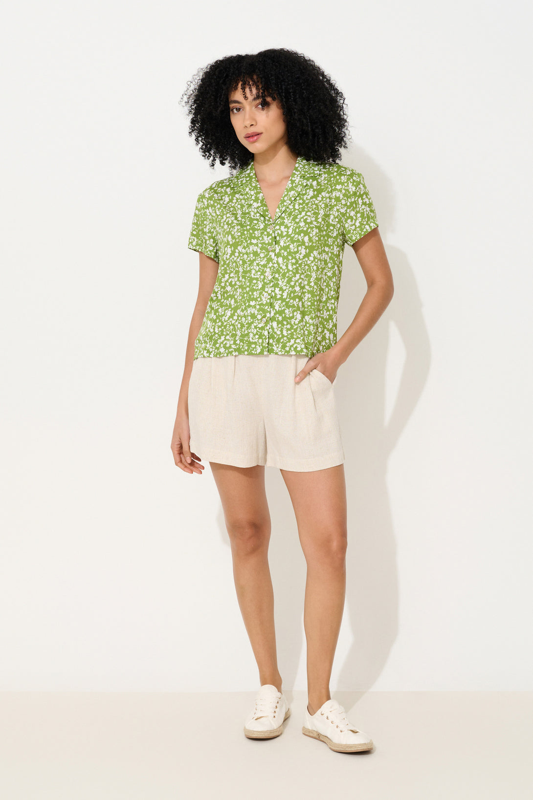 Marika Negative Floral Print Short Sleeve Shirt - Green