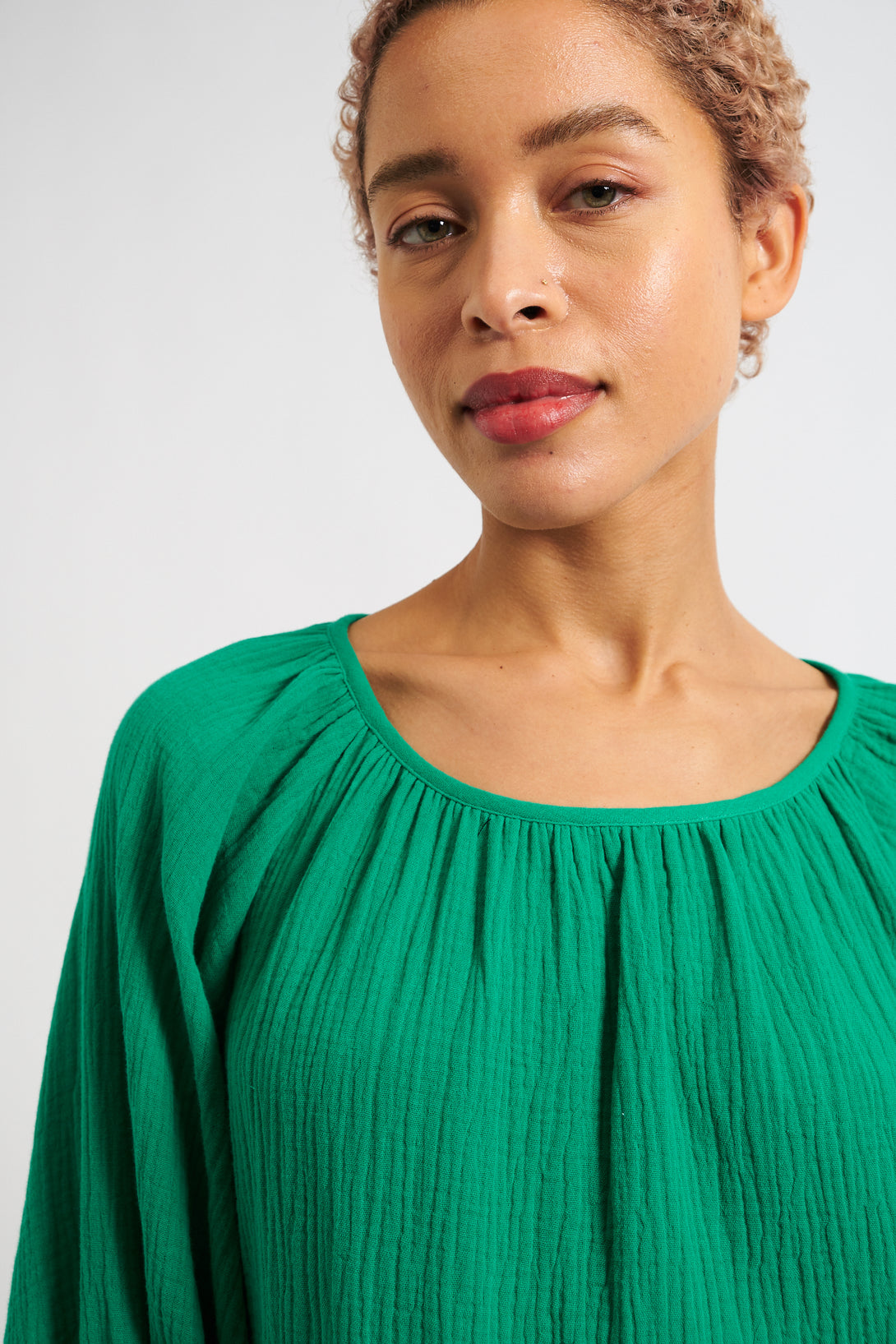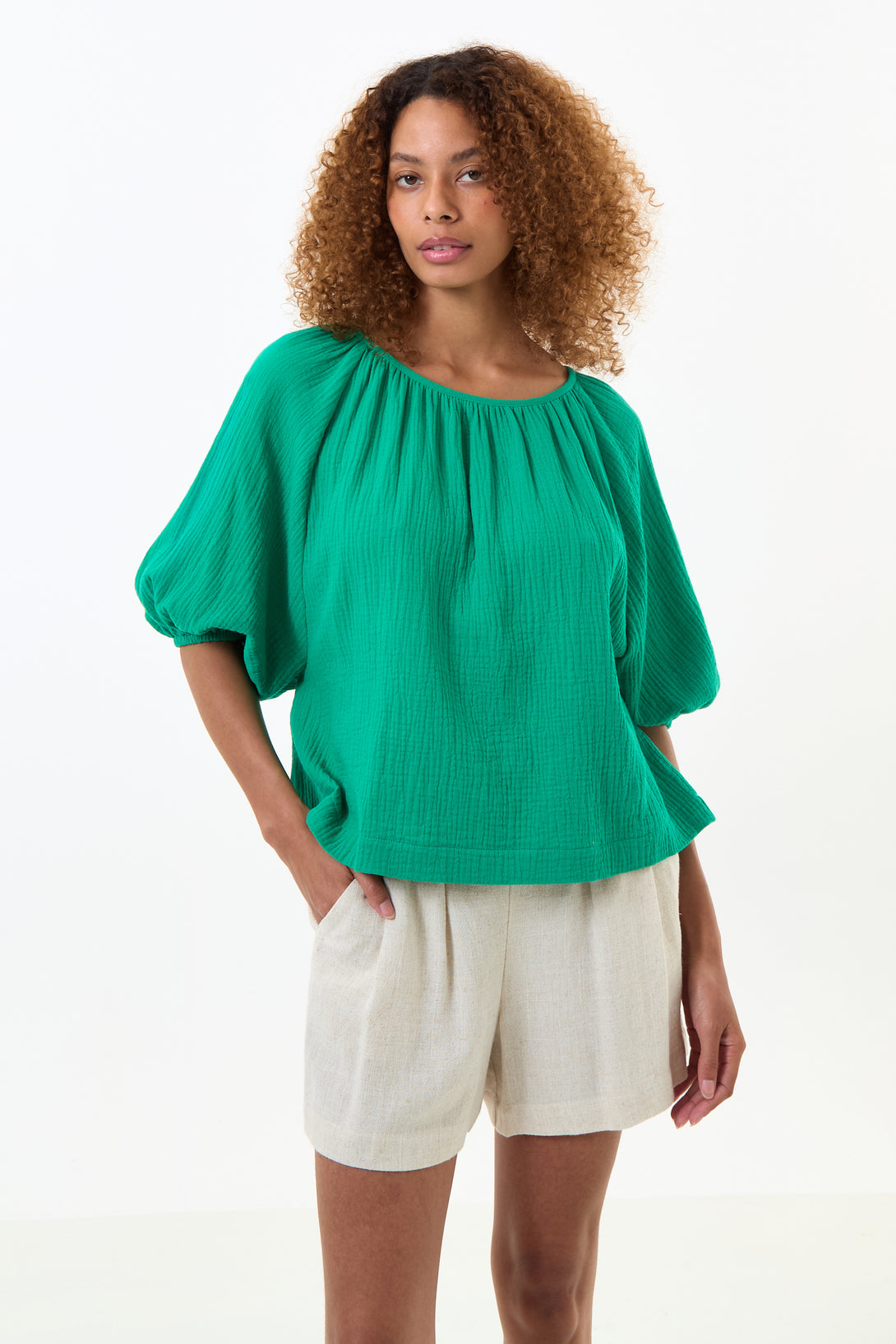 Introducing the Mayanna Double Gauze top in vibrant green. Made from soft and cooling cotton double gauze, this summer smock top is perfect for cooling down while looking hot. Versatile for any occasion - pair with shorts, denims, or over your bikini.
