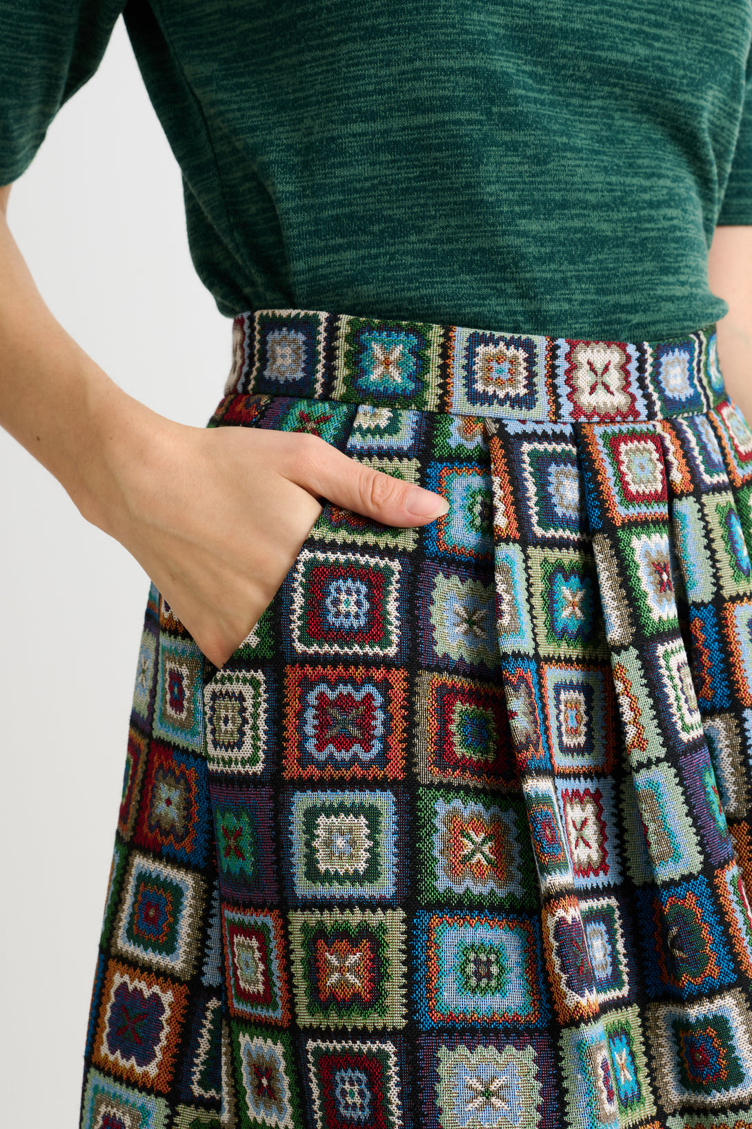 Pasadena 70'S Patch Jacquard Midi Skirt