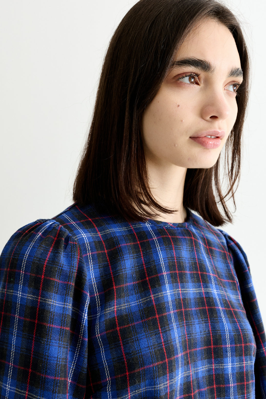 Rivka Winter Check Pleat Long Sleeve Blouse - Blue