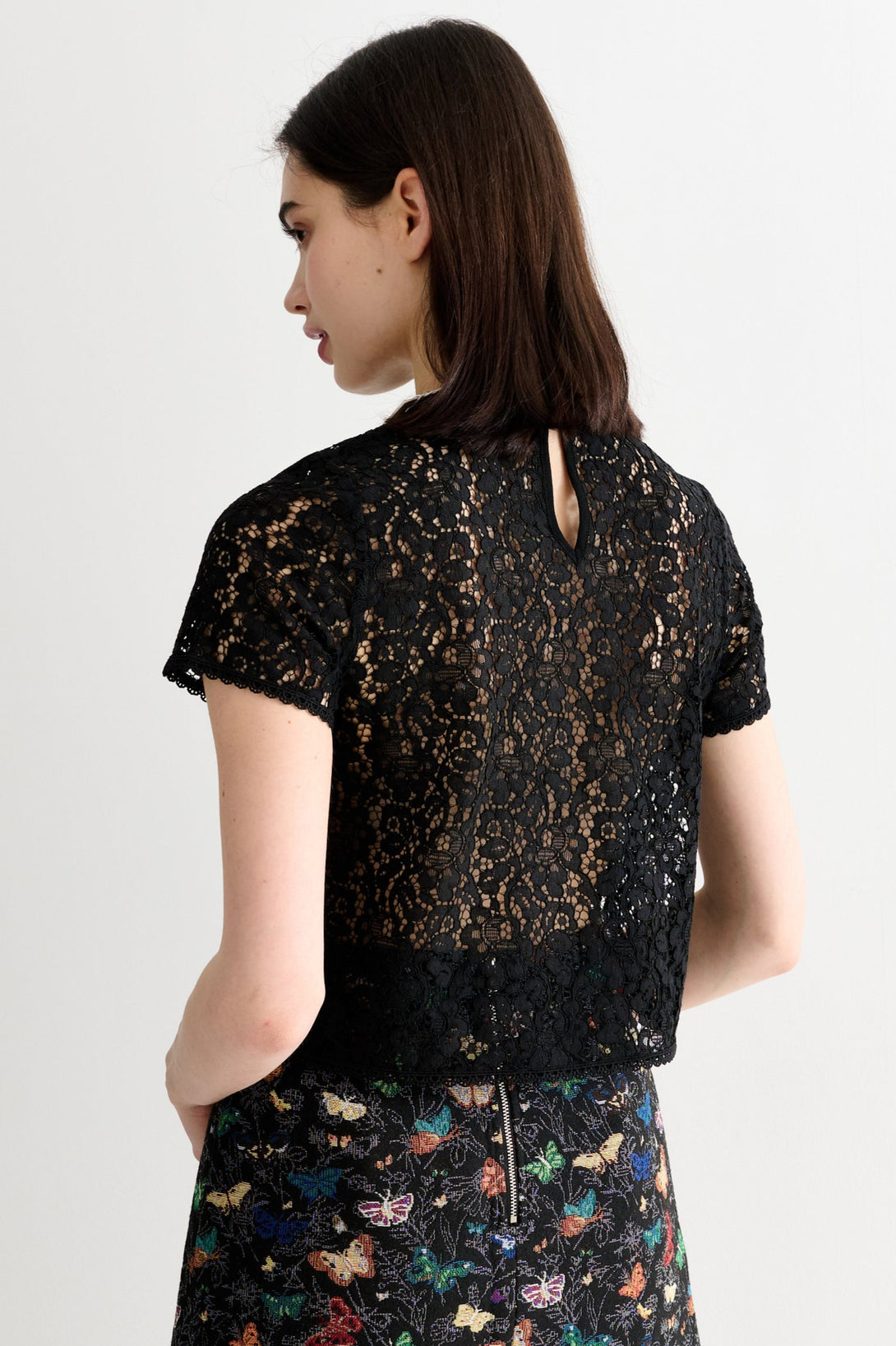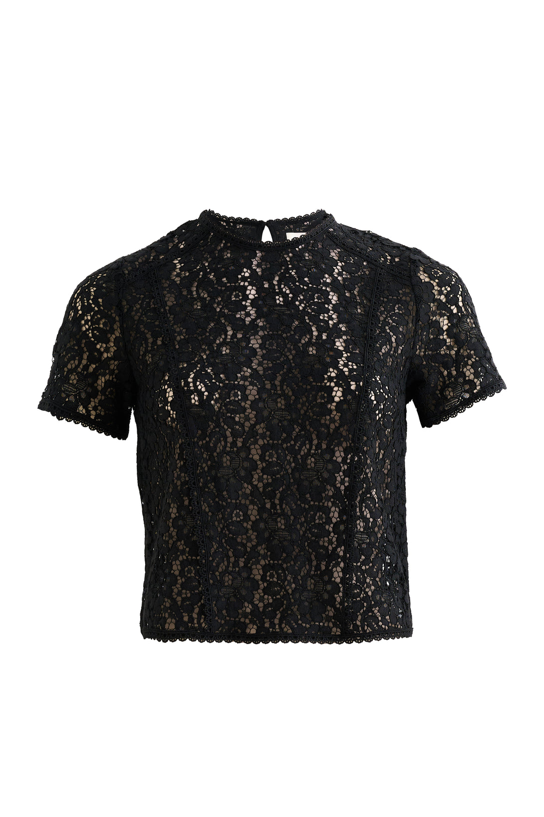 Add a fresh twist to your wardrobe with the Rufaro Lace short sleeve blouse in jet black. This charming top features additional lace trims to neck, hemline, sleeves and seams, making it the perfect pick to effortlessly brighten up any look. Playful yet elegant, it’s your go-to piece for an instant style lift!
