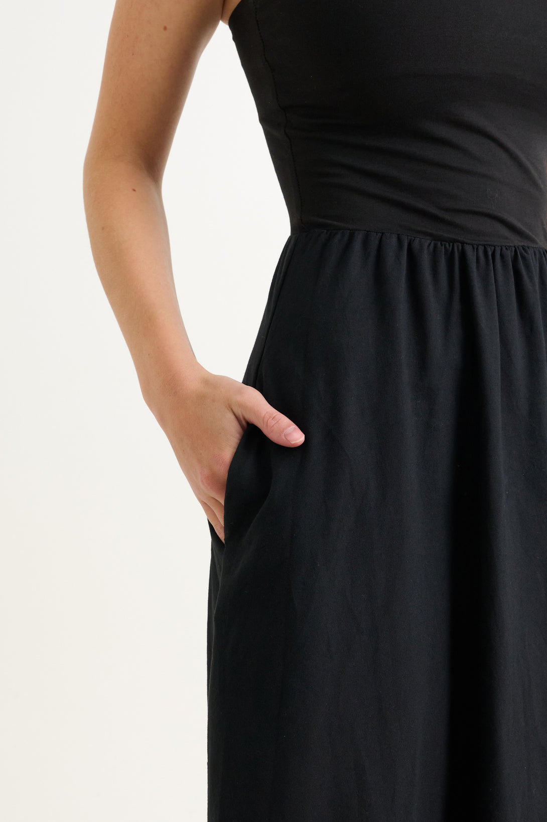 Soumia Jersey Bodice And Recycled Cotton Skirt Midaxi Dress - Black